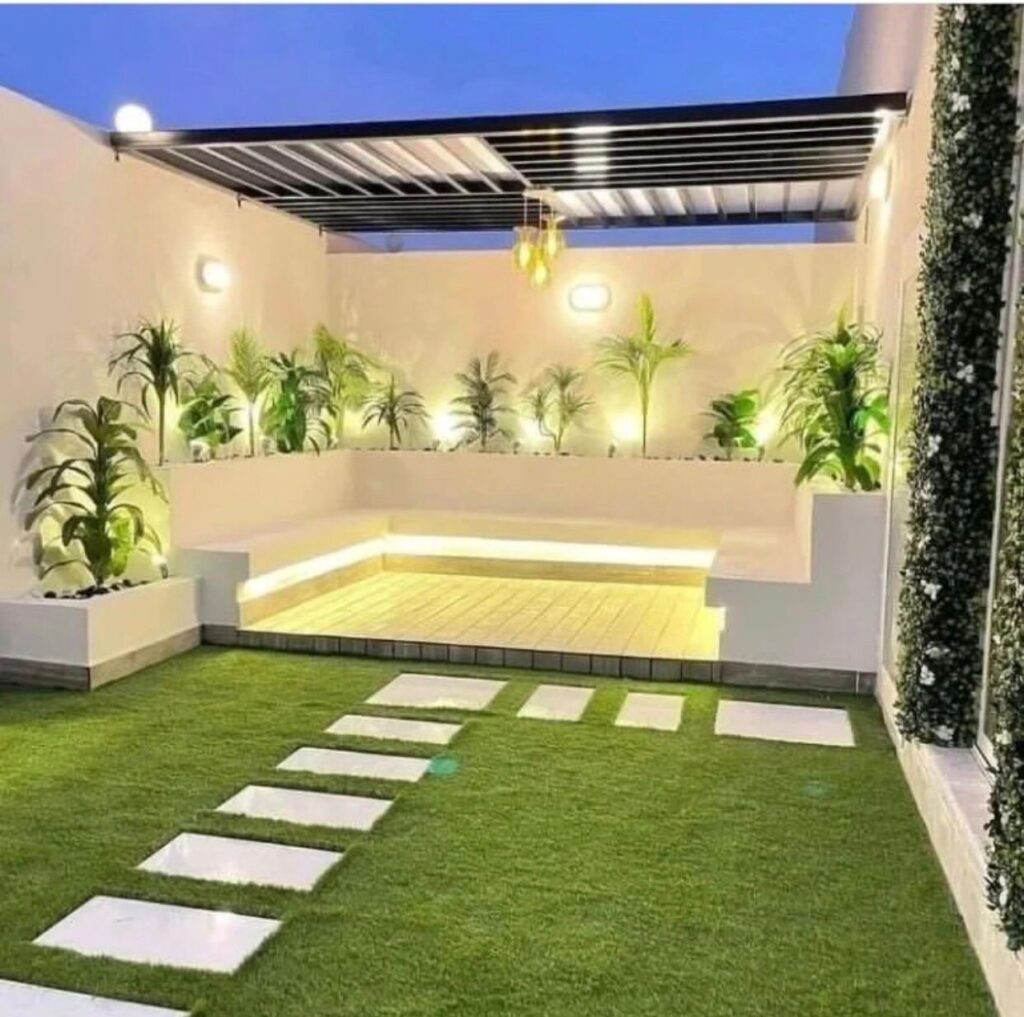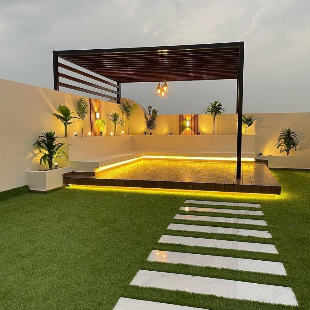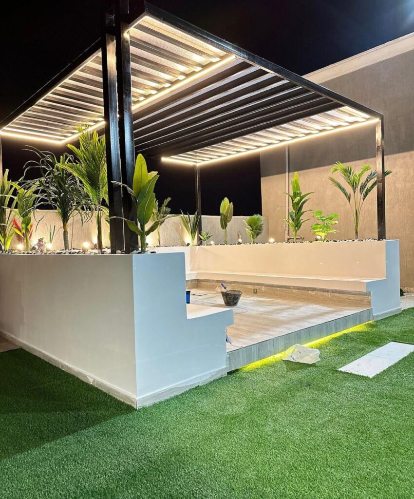 تضيف الجلسات الخارجية في الحديقة لمسة دافئة وحيوية لأي منزل، وتحوّل المساحة الخضراء إلى مكان مثالي لقضاء أجمل الأوقات. سواء أحببت الجلسات الأرضية بطابع عربي أو الجلسات العصرية بأثاث مريح وإضاءة هادئة، يقوم فريق المدن الخضراء لتنسيق الحدائق بتصميم جلسة تناسب ذوقك ومساحة حديقتك، باستخدام خامات تتحمل الشمس والرطوبة لتدوم طويلًا. تصميم يجمع بين الراحة والجمال والعملية.